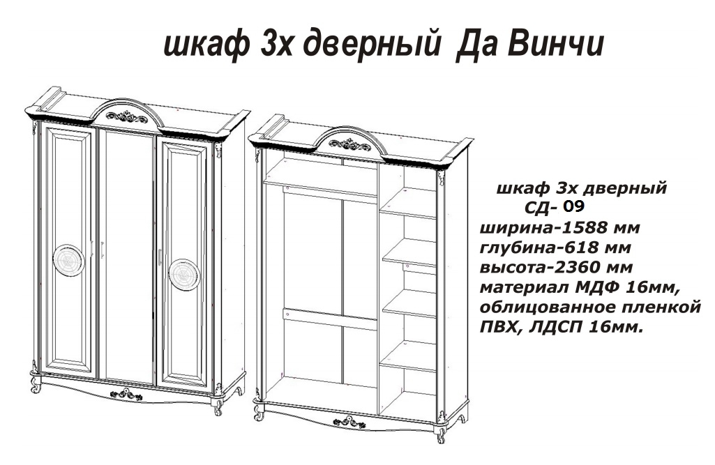 Шкаф 3-х дверный СД-09 Да Винчи (слоновая кость)
