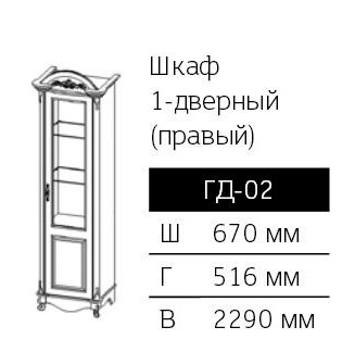 Шкаф 1-дверный (правый) ГД-02 Да Винчи (слоновая кость)