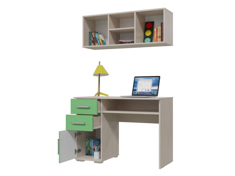 Стол с тумбой и шкаф с открытыми полочками обязательно порадует практичностью и функциональностью Вас и Ваших детей.