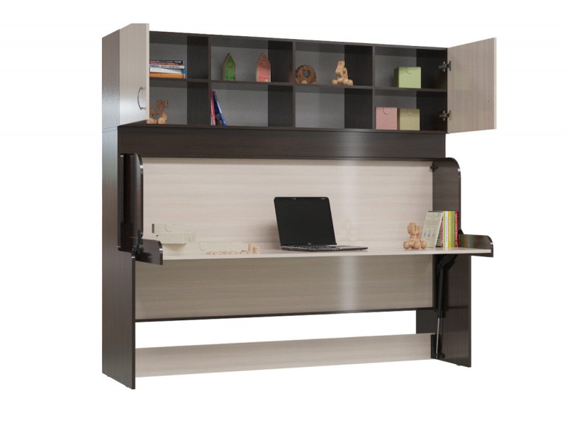 Это позволит ребёнку разместит над столом-кроватью учебники, книги, деловые бумаги и атрибуты отдыха.
