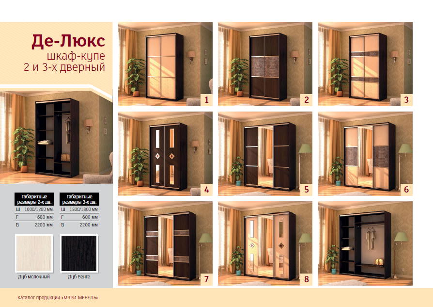 Линия Де-Люкс шкафов-купе Мэри наряду с конструктивным удобством предлагает шикарный внешний вид шкафов.