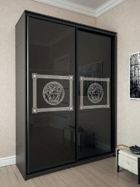 Двери данной модели шкафа-купе выполнены из декоративного стекла лакобель с нанесённым рисунком всемирно известного бренда Versace.