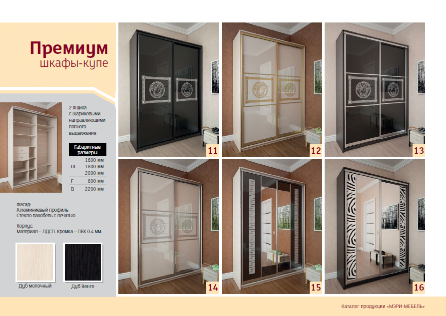 Линия Премиум шкафов-купе Мэри наряду с конструктивным удобством предлагает шикарный внешний вид шкафов.