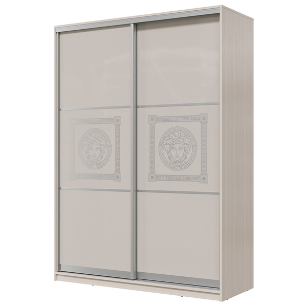 Äâåðè äàííîé ìîäåëè øêàôà-êóïå âûïîëíåíû èç äåêîðàòèâíîãî ñòåêëà ëàêîáåëü ìîëî÷íîãî öâåòà ñ íàíåñ¸ííûì ðèñóíêîì âñåìèðíî èçâåñòíîãî áðåíäà Versace.