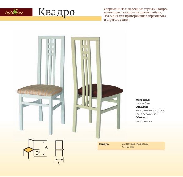 Стулья "Квадро" мягкие и удобные станут отлично подойдут для классической гостиной. Они станут хорошим дополнением для тихого ужина и для пышного приема.