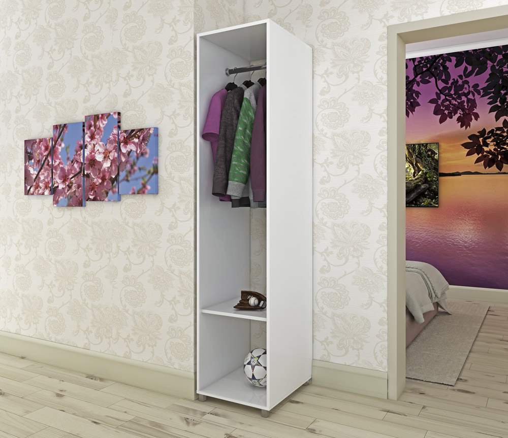 Шкаф для одежды «Альба» 1 дв. имеет простую конструкцию и небольшие габариты, что и обуславливает его низкую цену. Однако несмотря на это шкафы подобной конструкции удобны в плане компоновки нескольких шкафов с различной «начинкой». Он достаточно вместительный, включает верхнее отделение со штангой и просторную нишу снизу.