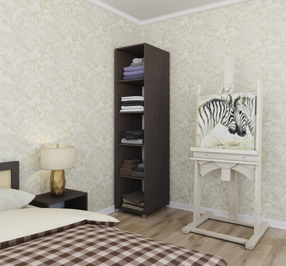 Шкаф для белья занимает минимум места и обеспечивает максимум комфорта. Его внутреннее наполнение представлено четырьмя глубокими полками, позволяю- щими аккуратно хранить постельные принадлежности и личные вещи.