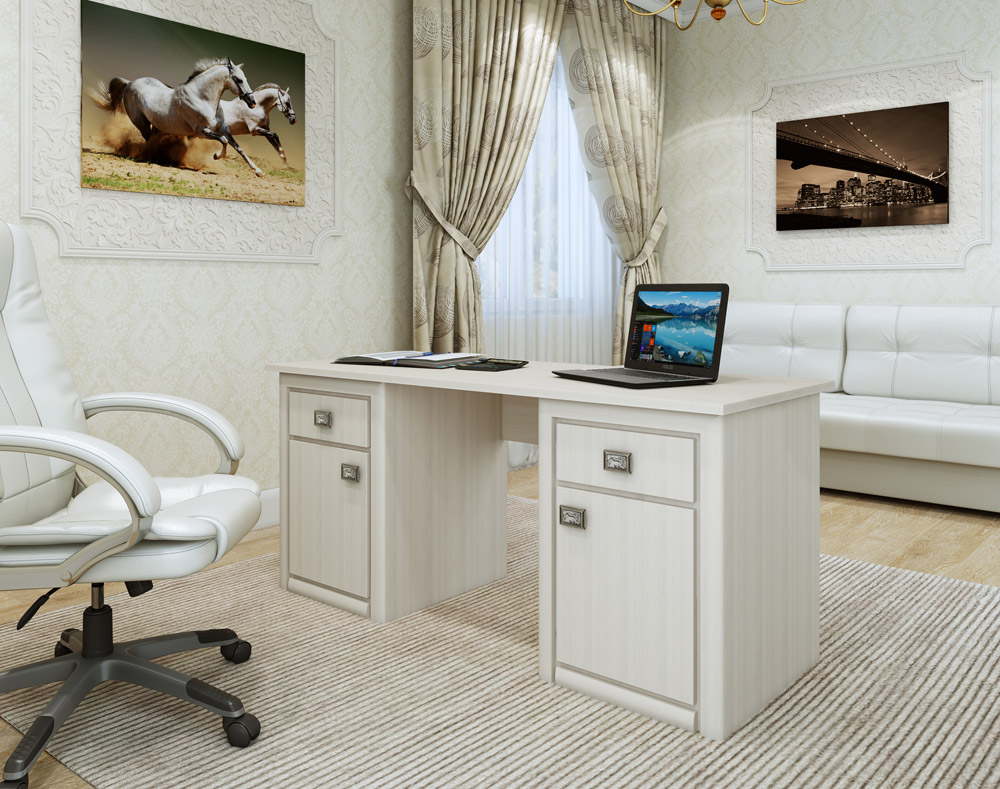 Красивый и удобный письменный стол «Кельн» 2Д/2Ш обеспечит удобное рабочее место. Практичная и функциональная модель стола изготавливается из ламинированной ДСП. Края обрамлены кромкой ПВХ. Модель имеет стандартную форму, толстую столешницу. Она дополнена двумя вместительными тумбами и выдвижными шуфлядами. Выразительный вид стола обусловлен богатой фурнитурой, характерной для данной серии.