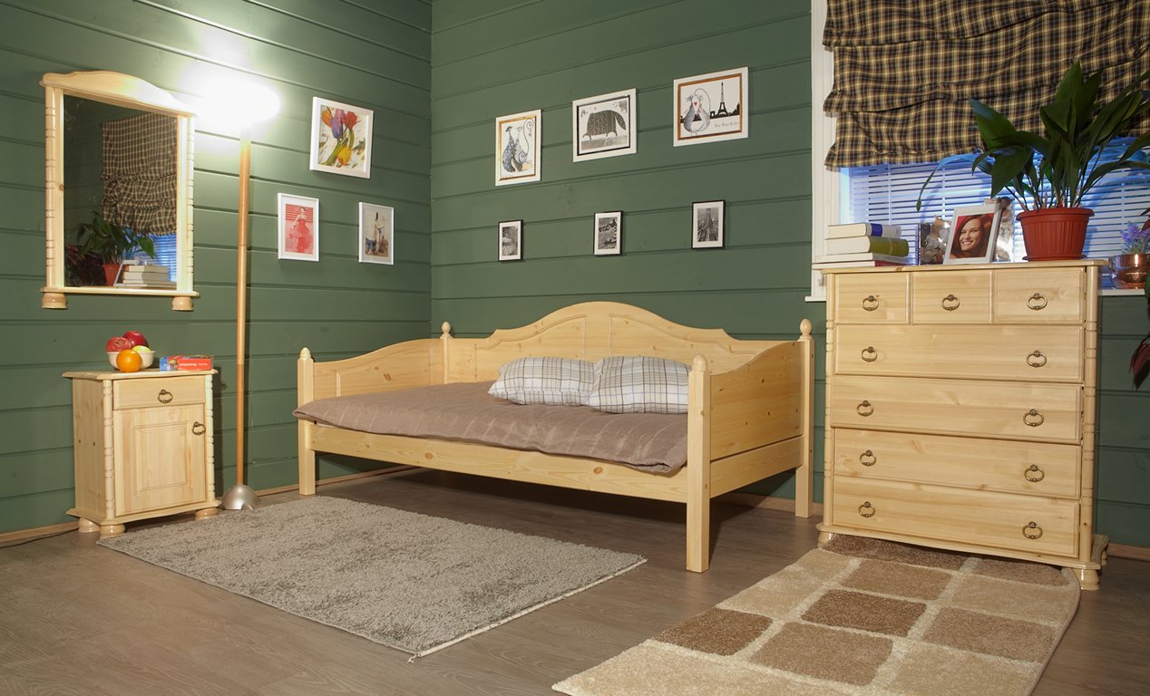 Зеркало в спальную комнату, идеально подходит для размещения сверху на комоде. Материал изготовления – массив сосны, основные качества которого – теплота, долговечность, экологичность. Элегантный дизайн рамы зеркала придаст интерьеру изысканный шарм и уют.