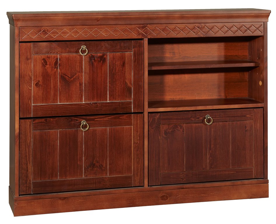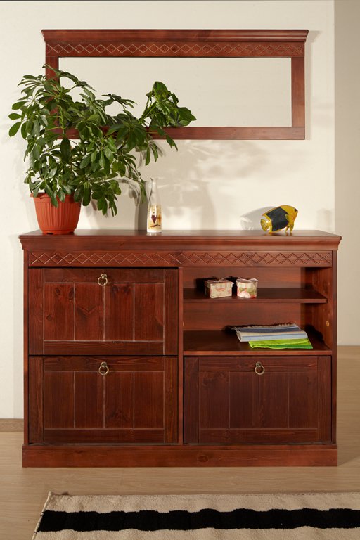 ДАНИЯ тумба для обуви №3 производится из массива долговечного натурального дерева - сосны. Покрытие составами на основе воды, без химии и запаха делает ее высокоэкологичной и подходящей для использования всей семьей! Тумба для обуви ДАНИЯ устроена четырьмя сегментами: тремя, оснащенными двумя полочками и откидным механизмом (для летней и зимней обуви) и одной - со съемной полкой (для хранения различных мелочей и средств для ухода). По желанию клиента, секция с полочкой может располагаться, как слева, так и справа. Верхнюю царгу украшает незатейливая узорчатая резьба, а сам фасад – небольшие металлические колечки фурнитуры. Расставив на столешнице тумбы любимые фото, комнатные растения, различные, дорогие сердцу, безделушки, вы сделайте ее центром внимания всей прихожей. В нашем интернет-магазине, по желанию клиента, возможно сделать заказ на выполнение тумбы в одном цвете и в комбинации расцветок, представленных на сайте. Приобретайте вместительную, прочную, долговечную и высокоэкологичную ДАНИЯ тумбу для обуви №3 из натуральной сосны.