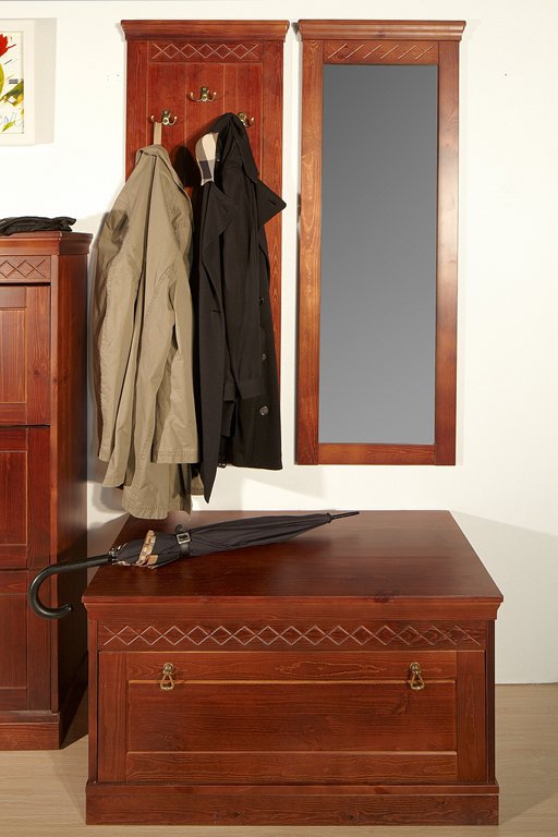 ДАНИЯ вешалка №2 в сочетании с иной мебелью из одноименной коллекции фирмы Timberica – незаменимый предмет в оформлении прихожей Вашего дома, независимо от ее размеров. Строгая и лаконичная, элегантная и практичная конструкция настенной панели украшена резным орнаментом, что является отличительной чертой всей мебельной серии ДАНИЯ. На крючках утонченной навесной настенной панели реально поместить сезонную одежду целой семьи. Вешалка производится из массива высококачественной и надежной карельской сосны и покрывается составами без запаха и использования химии, что делает мебель высокоэкологичной. Уже на входе в квартиру Вы ощутите приятные ароматы свежей древесины, хвои и смолы. Наш интернет-магазин предоставляет реальную возможность своему заказчику выбрать цветовую вариацию выполнения конструкции и даже комбинацию расцветок, представленных на сайте. Приобретайте у нас ДАНИЯ вешалку №2, дизайнерское решение которой привнесет в ваш дом шик и изящество!