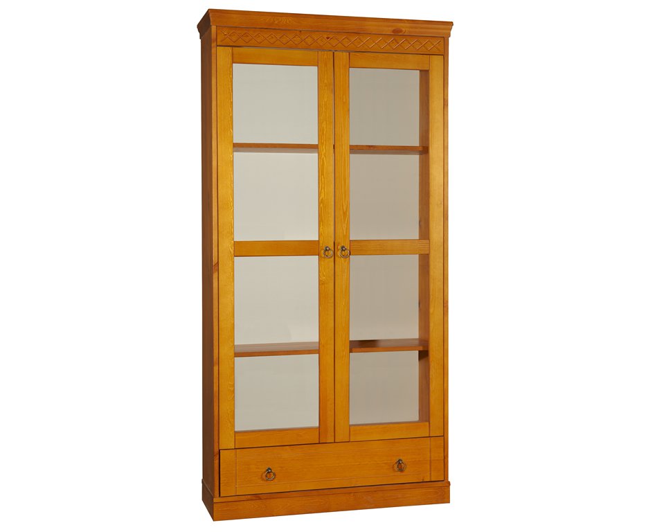 ДАНИЯ шкаф книжный оригинального северного сдержанного классического дизайна, как и вся продукция компании Тимберика, изготавливается из массива прочного дерева - сосны и обязательно проходит проверку качества. Две распашные двери шкафа книжного ДАНИЯ (990 мм х 330 мм х 1940 мм) остеклены. Стеклянные вставки защищают его содержимое от пыли, и за ними, кроме книг, могут быть выставлены разные сувениры и памятные вещицы. Внизу шкафа находится выдвижной ящик на бесшумных металлических полозьях. Книжный шкаф может использоваться и как отдельный предмет меблировки, и как дополнение к другой мебели из одноименной коллекции ДАНИЯ, близкой к элегантному и уютному «Викторианскому» стилю, основная отличительная черта которого – натуральное дерево.