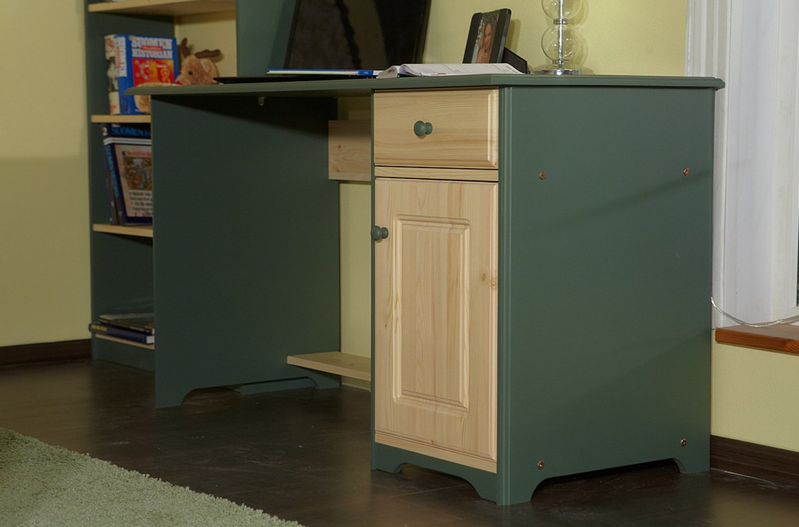 КЛАССИК стол письменный – стильная, практичная, привлекательная и комфортная модель одноименной коллекции меблировки из массива замечательного мебельного материала - сосны. Проверенная временем конструкция от Timberica включает в себя вместительную тумбу с выдвигающимся ящиком и нишей с двумя полками за бесшумно закрывающейся дверцей. Под большой удобной столешницей располагаются две деревянные полочки, на одну из которых можно что-либо положить, а на другую - поставить ноги во время работы. Сосна, из которой выполняется коллекция КЛАССИК, делает мебель безопасной для здоровья и высокоэкологичной. Эта универсальная модель подойдет для взрослых и для школьников и впишется практически в любой интерьер, тем более что на нашем сайте существует возможность выбора цветового оформления и даже комбинации цветов. Не откладывайте покупку в долгий ящик! Заказывайте в нашем интернет-магазине КЛАССИК стол письменный, с помощью которого все деловые бумаги, книги, учебники, принадлежности для письма и прочее Ваши и Ваших детей будут содержаться в порядке!