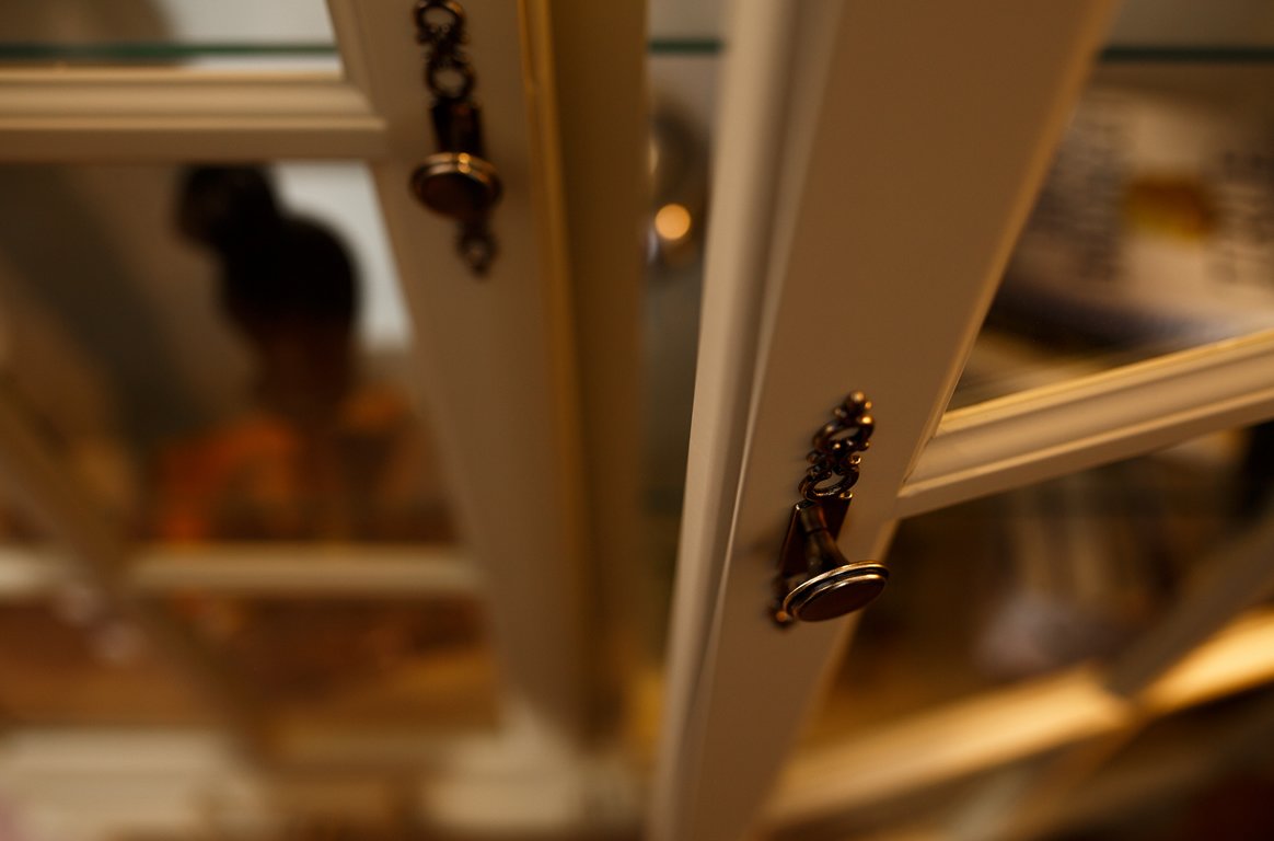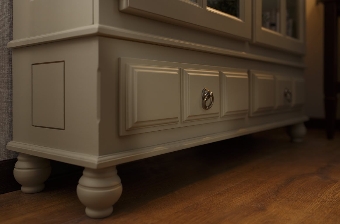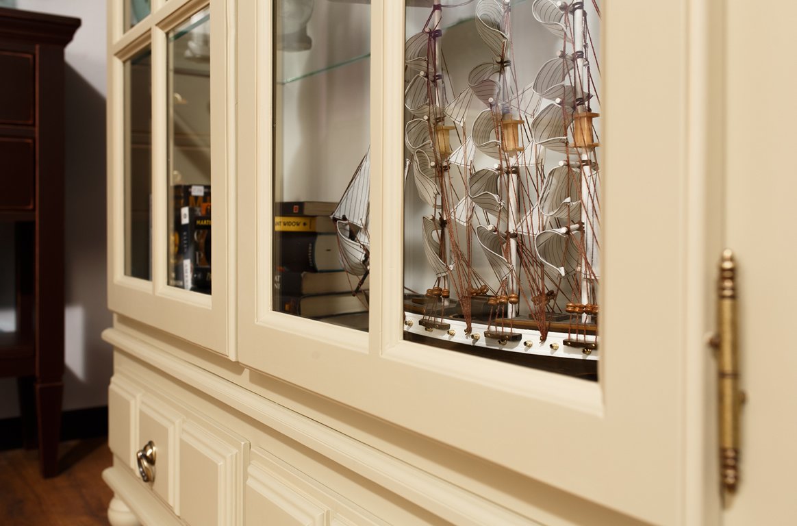 Модель также оснащается двумя выдвижными ящиками, которые станут идеальным пристанищем для столовых приборов. Уникальные ножки серванта придают ему изысканности, а качественные стекла позволяют похвастаться сервизами и другой посудой. Дверцы получили интересной формы ручки, которые также оформлены в классическом стиле.