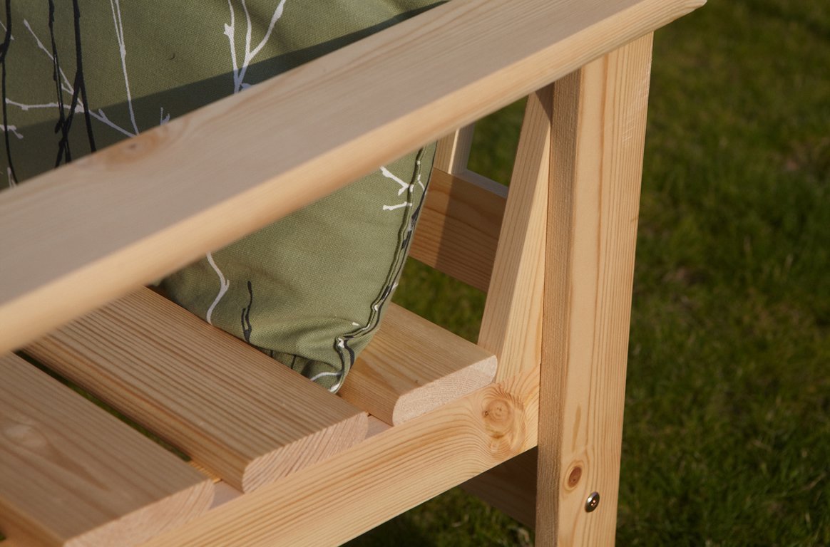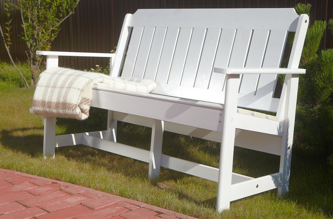 Скамья из натурального дерева станет отличным дополнением садового интерьера. Угол между сиденьем и спинкой рассчитан для создания максимально удобного времяпрепровождения. Все углы скамьи скруглены, что делает её безопасной. Скамья будет служить вам долго, она изготовлена из массива сосны, поэтому является долговечной и экологичной.
