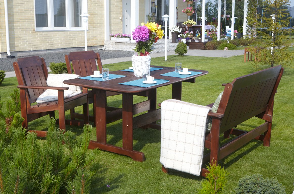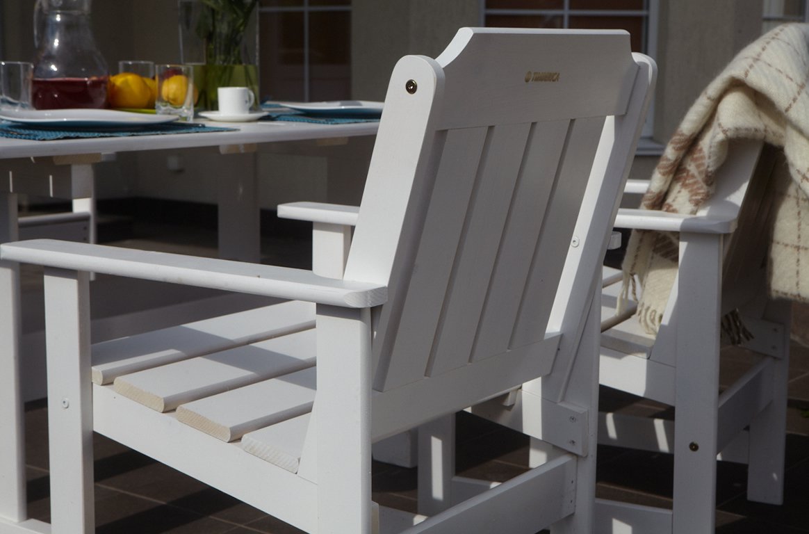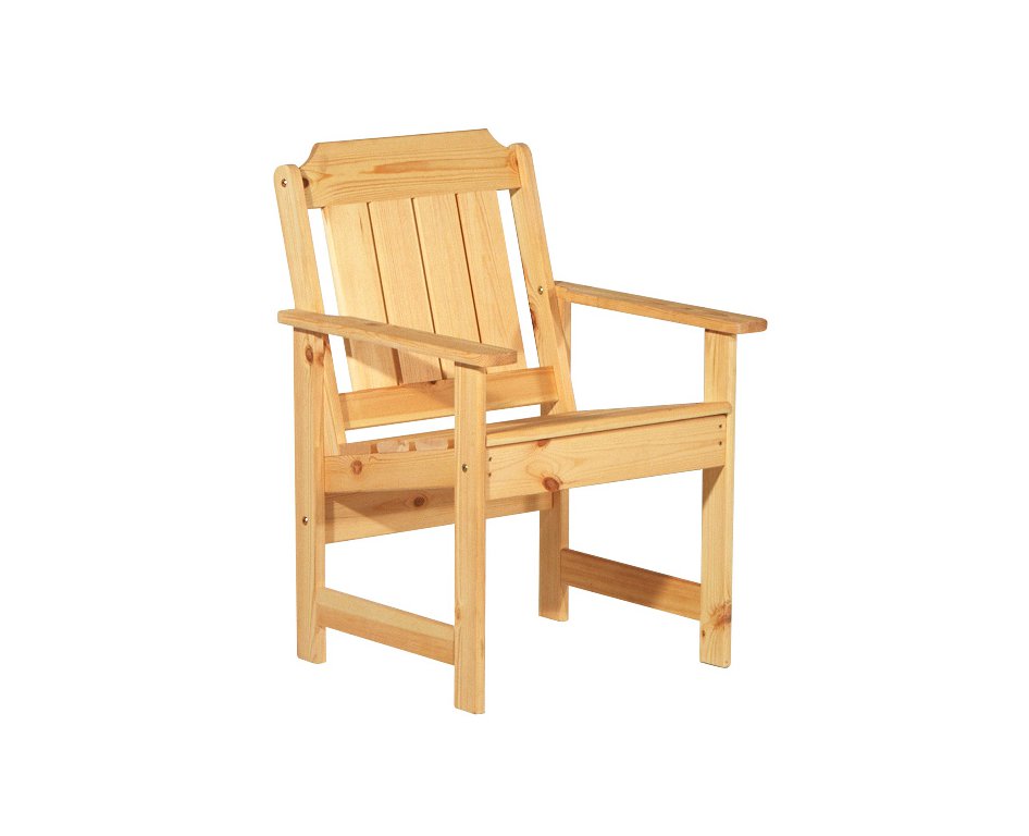 Кресло изготовлено из массива сосны, материала отличающимся долговечностью и экологичностью. Для наиболее комфортного использования кресла, угол между сиденьем и спинкой рассчитан для создания максимального удобства. Все углы кресла скруглены, что делает его безопасным. Эргономичное и практичное кресло подойдет как для квартиры, так же и для дачного интерьера.