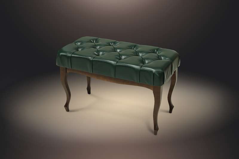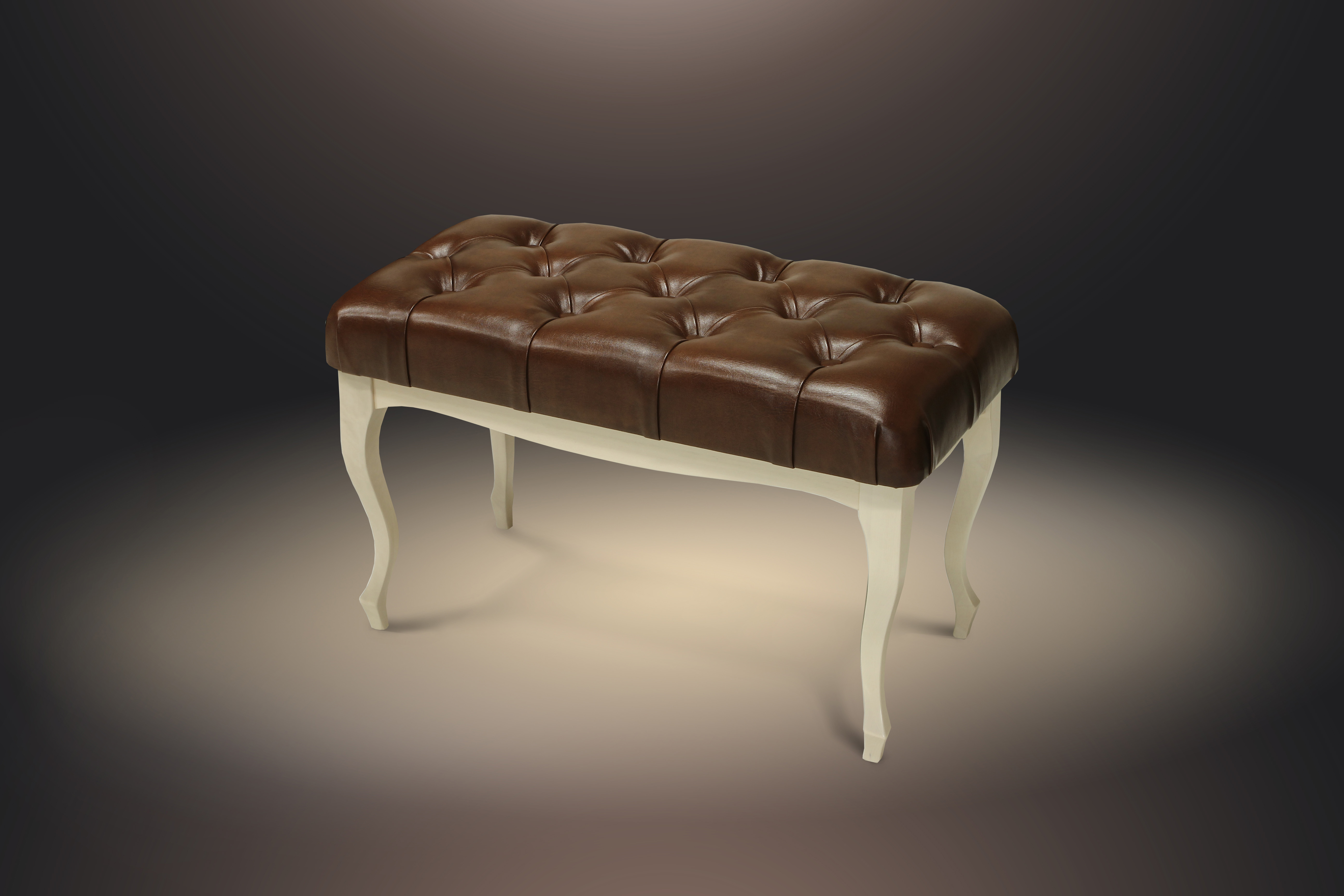 Роскошная мягкая банкетка-пуф для оформления прихожих с самыми разнообразными интерьерами. Ее каркас изготовлен из ЛДСП, а сверху покрыт высококачественной экокожей, декорированной каретной стяжкой.