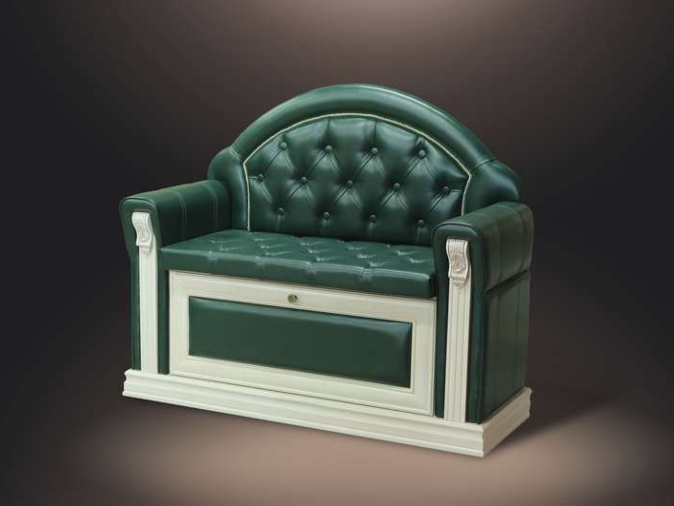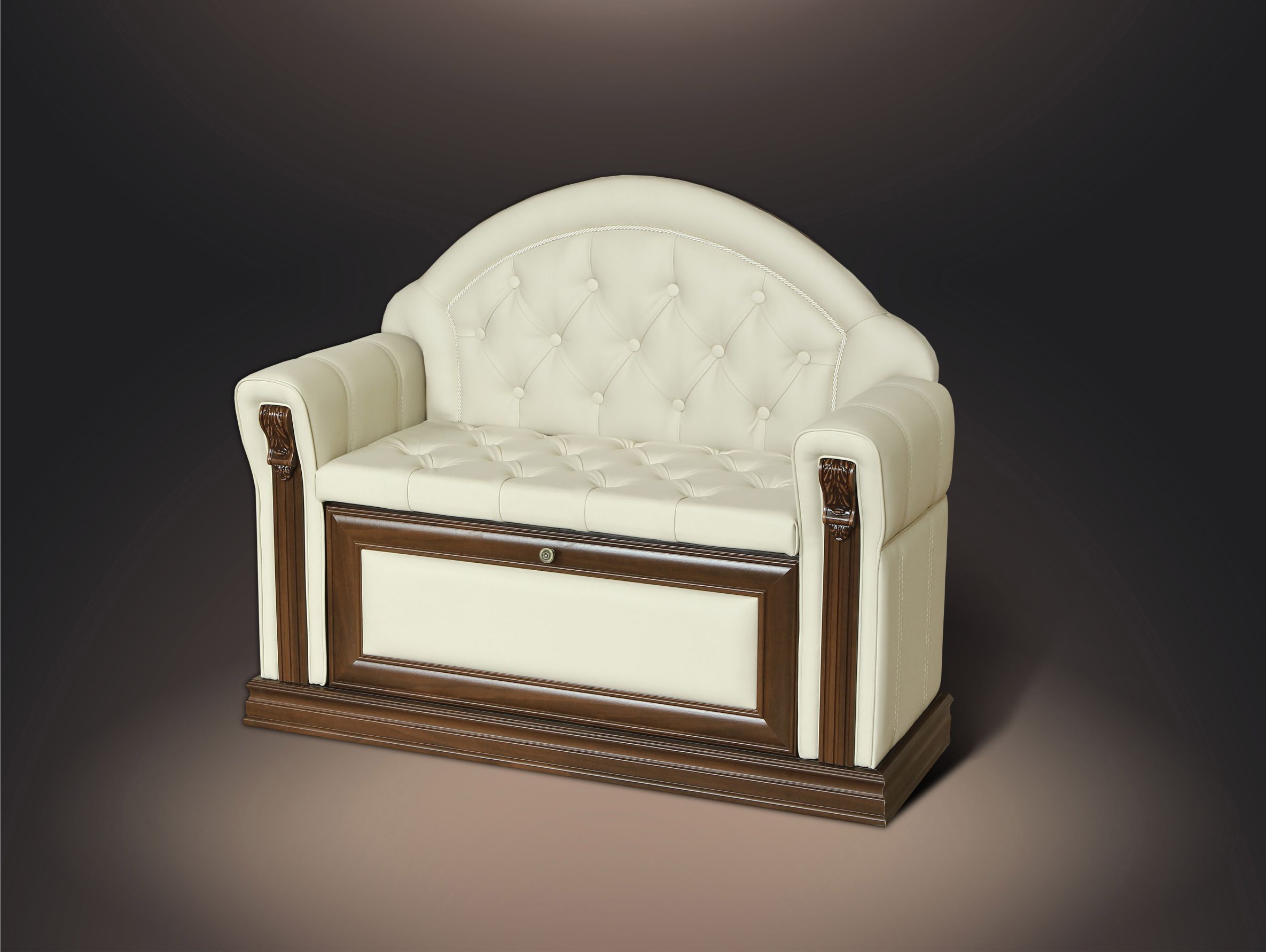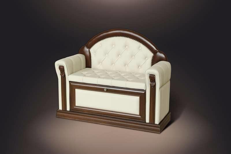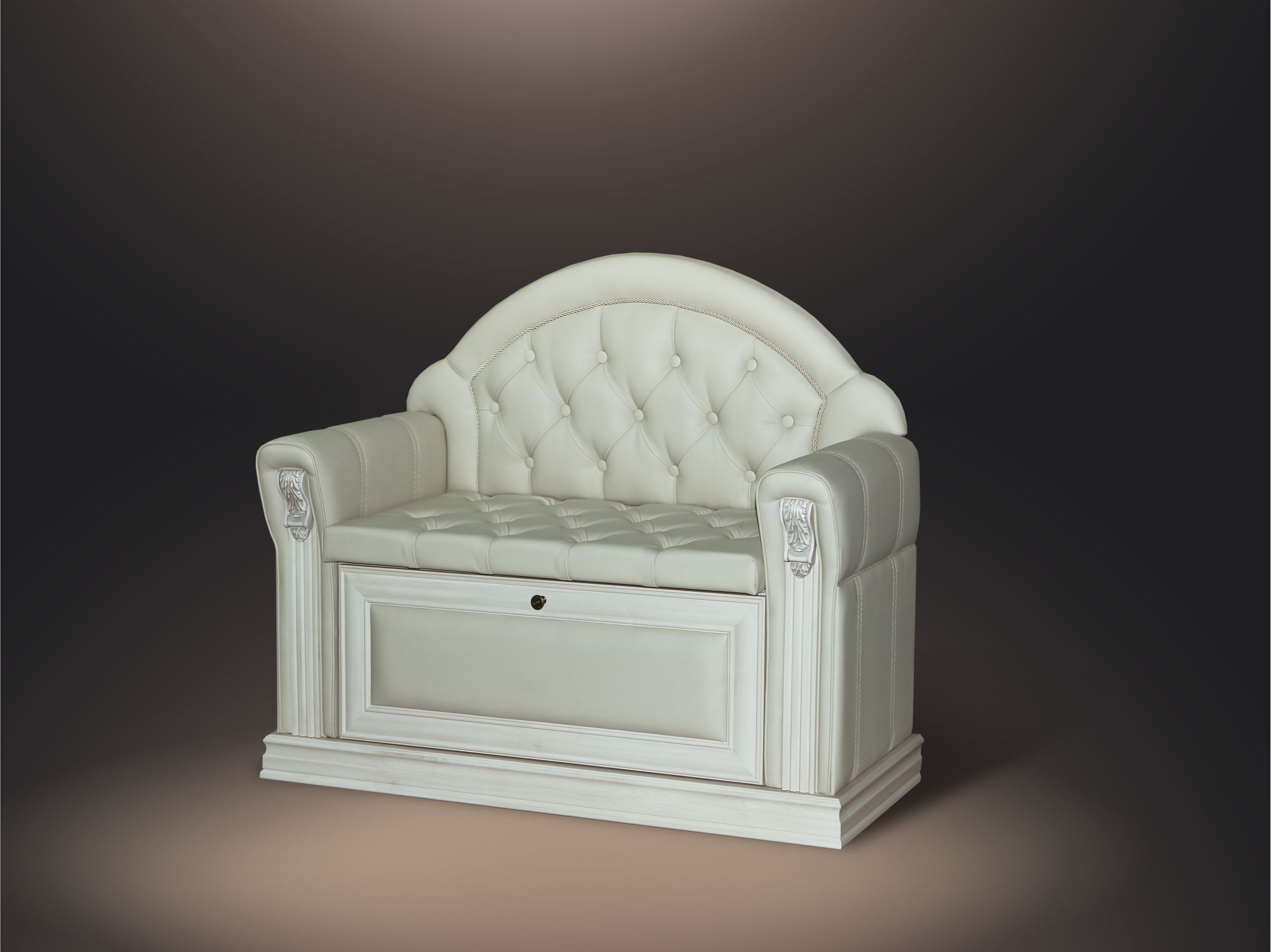 Роскошная мягкая банкетка для оформления прихожих с самыми разнообразными интерьерами. Ее каркас изготовлен из ЛДСП, а сверху покрыт высококачественной экокожей, декорированной каретной стяжкой.