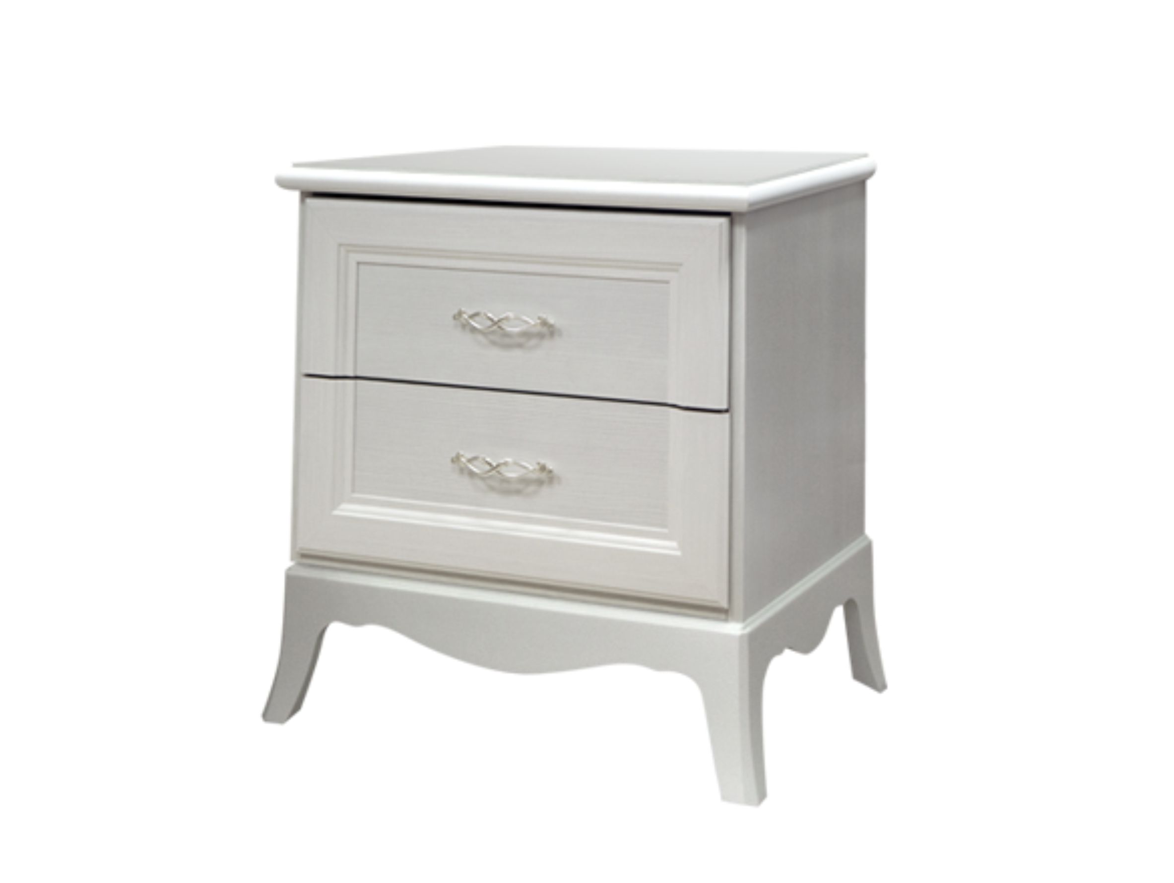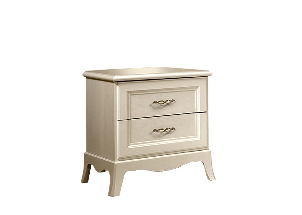 Тумба прикроватная Амели (Ярцево) - элегантная прикроватная тумба выполнена в трех цветовых исполнениях: штрих лак, выбеленный дуб и ноче. Два небольших выдвижных ящика с бесшумными скрытыми направляющими расположены на фигурном основании с выгнутыми ножками и декорированы металлическими витиеватыми ручками.