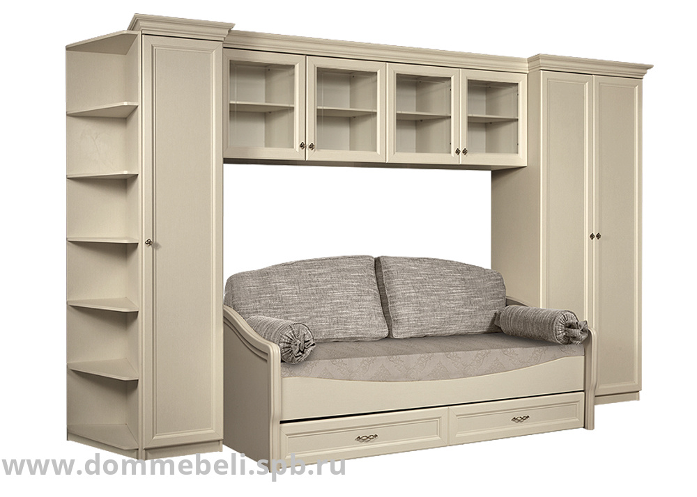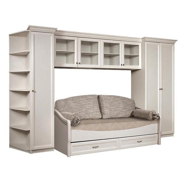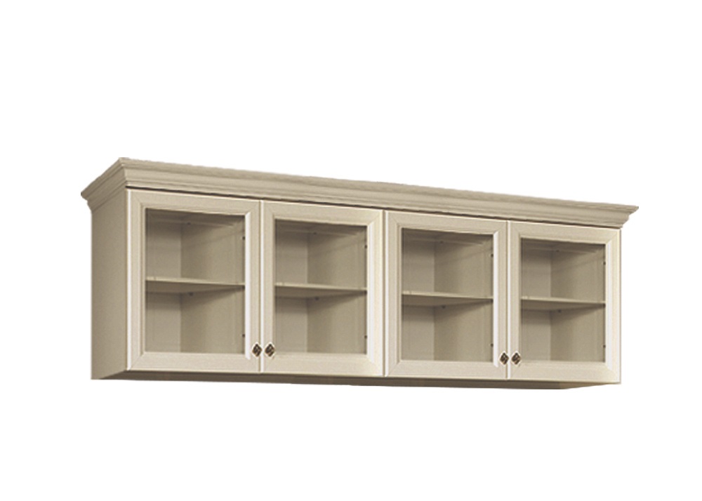 Антресоль с витражами Амели (Ярцево) - антресольные полки помогут обустроить классический интерьер гостиной или детской. За четырьмя застекленными распашными фасадами расположены четыре отделения для хранения. Фасадное стекло декорировано лаконичной гравировкой по периметру. Завершает оформление модуля фрезерованный карниз классической формы. Распашные фасады оснащены петлями с доводчиками. Лицевая фурнитура - фигурные металлические ручки. Модель представлена в двух цветовых исполнениях: штрих лак и выбеленный дуб.