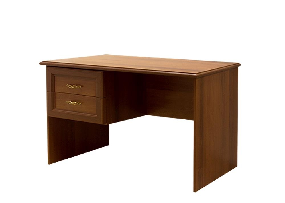 Стол письменный Амели (Ярцево) - классический письменный стол выполнен с учетом требований эргономики и безопасности. Все доступные поверхности стола имеют сглаженные формы. Два выдвижных ящичка, с бесшумными скрытыми направляющими, расположены слева под столешницей, оформленной торцевой фрезеровкой. Рамочные, с фрезеровкой, фасады ящиков декорированы фантазийными металлическими ручками. Стол выполнен в трех цветовых вариантах: штрих лак, выбеленный дуб и ноче.