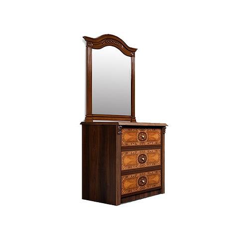 Украшенные шелкографией фасады из высококлассных материалов, тончайшие рисунки на экошпоне и несколько слоев итальянского лака – стилизация под барокко ни в чем не уступает оригиналу и даже опережает его, ведь современная мебель изготавливается с помощью новейших технологий. «Карина-2» – практичная, долговечная, экологически чистая, благородная спальня цвета «темный орех», у которой есть все шансы доставить вам массу положительных эмоций. Поверьте, разглядывая эти предметы интерьера, вы будете снова и снова удивляться тому, как производитель просчитал каждую черточку и выверил каждый штрих!